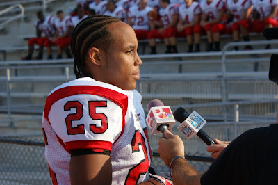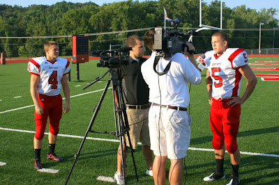 At first one of the Freshmen Jays got a little anxious and thought Media Day was when they got to go after the media, hence inflicting a dent in the rear bumper of the KOMU Scion as they tackled it. Good thing it was just a Freshmen, otherwise the reporter might have had to call for a ride back to the studio.