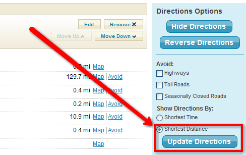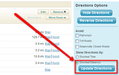 If interested in the Shortest Distance once the MapQuest page opens you can select Shortest Distance along the right hand side of the page and click Update Directions to get directions going up Hwy 50.